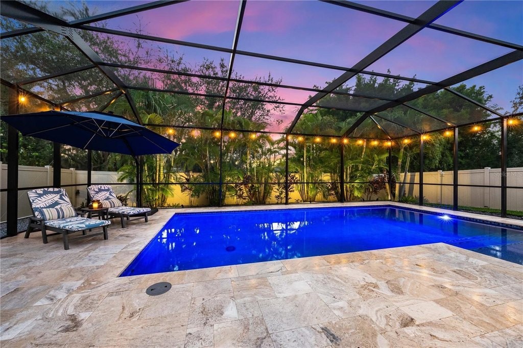 Welcome Home to this beautifully maintained property. The open Great Room is spacious and inviting, which leads right out to the gorgeous pool area and fenced in backyard. There is also a coveted 3 car garage! The floors are a neutral tile (that looks like wood) and are throughout the downstairs area. The beautiful staircase is engineered hard wood. The kitchen is huge, immaculate and stylish with granite counter tops and counter seating. Upstairs you'll find the primary bedroom, beautiful en-suite bathroom and super-size closet. Two additional bedrooms, the second bathroom and a loft area for study or play zone. Convenient upstairs laundry is also a plus! Wait until you see the spectacular, large, saltwater pool and ample deck space, both in and out of the sun. The pool was new in 2022 and has a heater and a large sun shelf with a pool umbrella. The pool decking is travertine, and the interior of the pool is pebble tec. The lighting at night is “drop dead knock your socks off”! The exterior was painted in 2023. A whole house 50Amp generator hook-up is included for peace of mind and hurricane shutters as well. A new water heater was installed in 2024. Palmer Reserve is located very near to Tatum Ridge Elementary and the Celery Fields. Just East of 75, a growing area, with a new Publix at Fruitville Farms, and the Fruitville Library, and a short drive to the UTC area, Waterside at Lakewood Ranch for dining and shopping, and the brand-new Mote Marine Aquarium. This location can't be beat. Easy access to I-75, or downtown and the hospital. No CDD fee and low HOA that covers cable, internet, irrigation, the community playground and common area maintenance. This home has been lovingly maintained and is in pristine condition with beautiful landscaping and landscape lighting. You will not be disappointed!!!